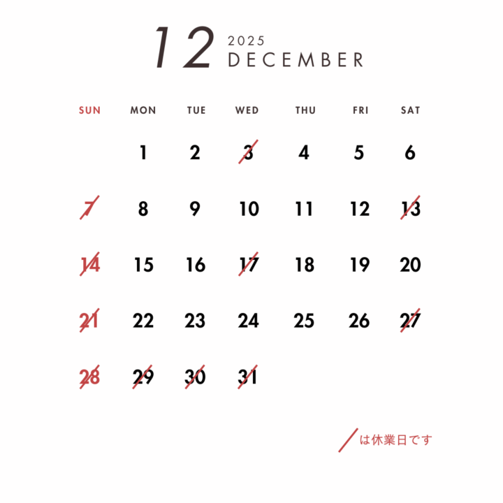 ●2025年12月の営業日のお知らせ