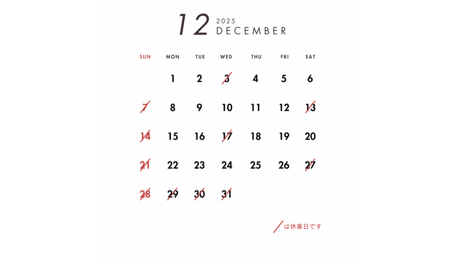 ●2025年12月の営業日のお知らせ